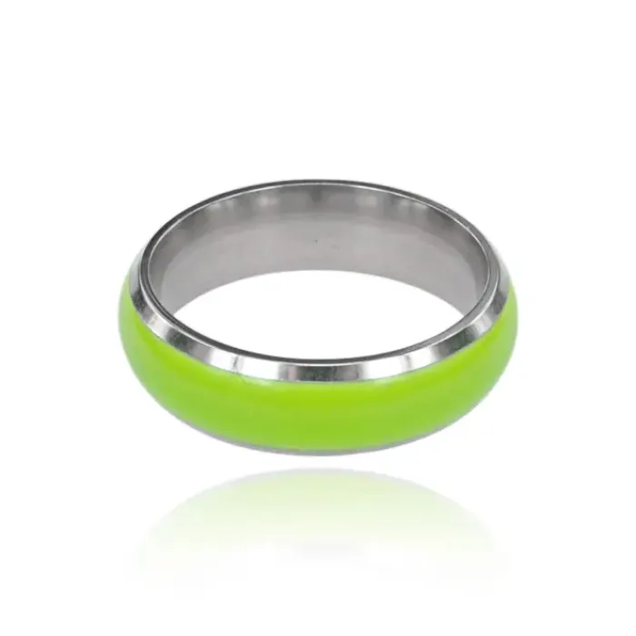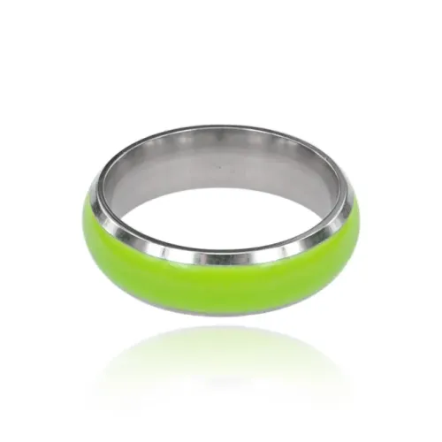 Светящееся кольцо зеленого цвета из металла с люминесцентным эффектом.