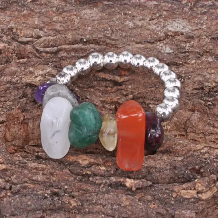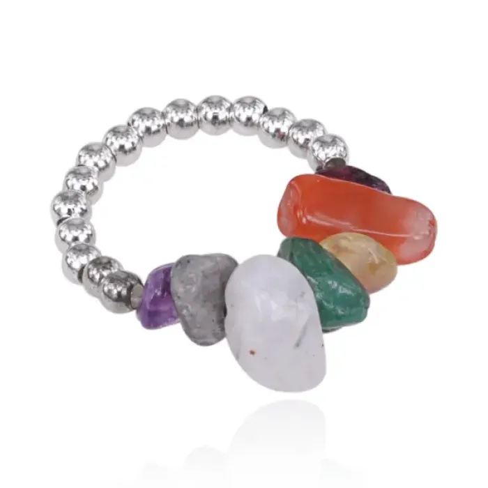Безразмерное кольцо с дизайном «Семь чакр». Изготовлено из эластичного материала с инкрустацией камнями.