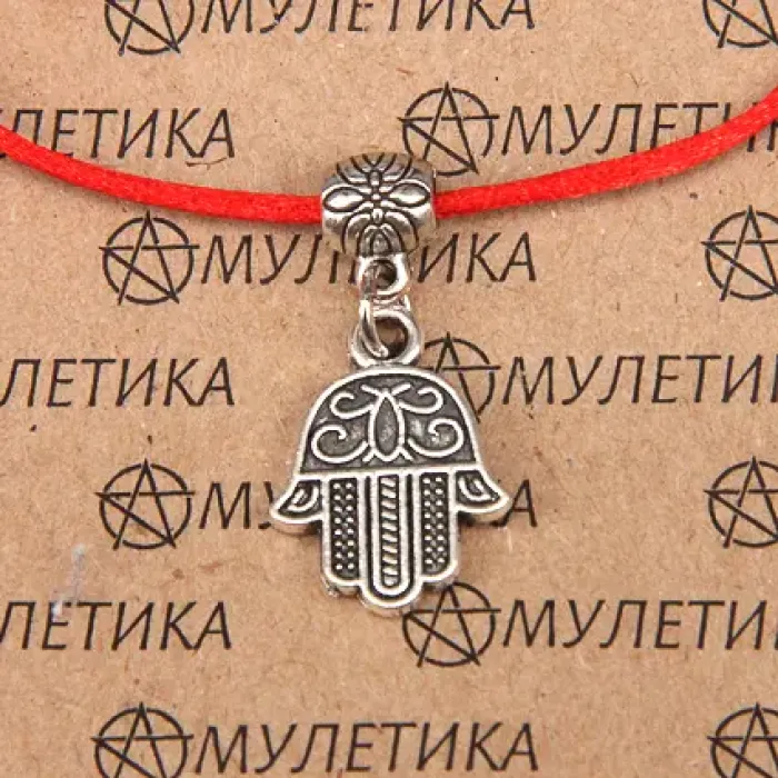 Браслет на красной нити Хамса — это стильный аксессуар, который несет в себе символику защиты и удачи. Изготовленный из шелковой красной нити с металлической подвеской, он станет прекрасным дополнением к любому образу.