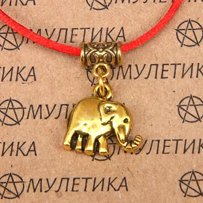 Браслет на красной нити Слон, золот. KB014