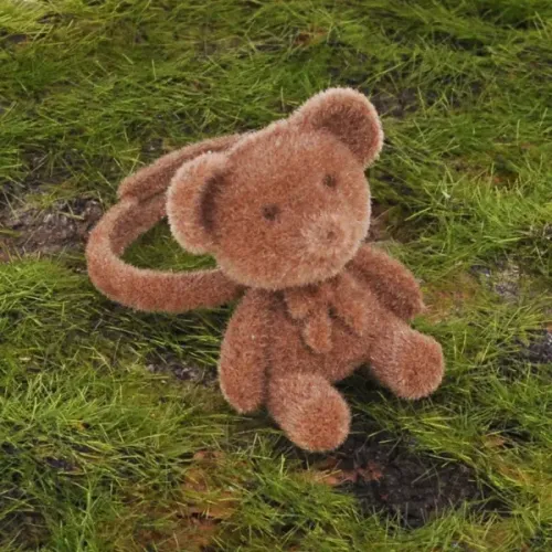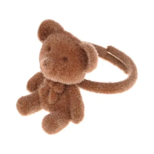 Безразмерное кольцо с фигуркой медвежонка, выполненное из металла и искусственного бархата.