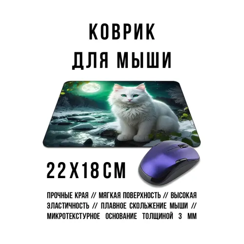 Коврик для мыши 22х18см Белая кошка полнолуние KMP736
