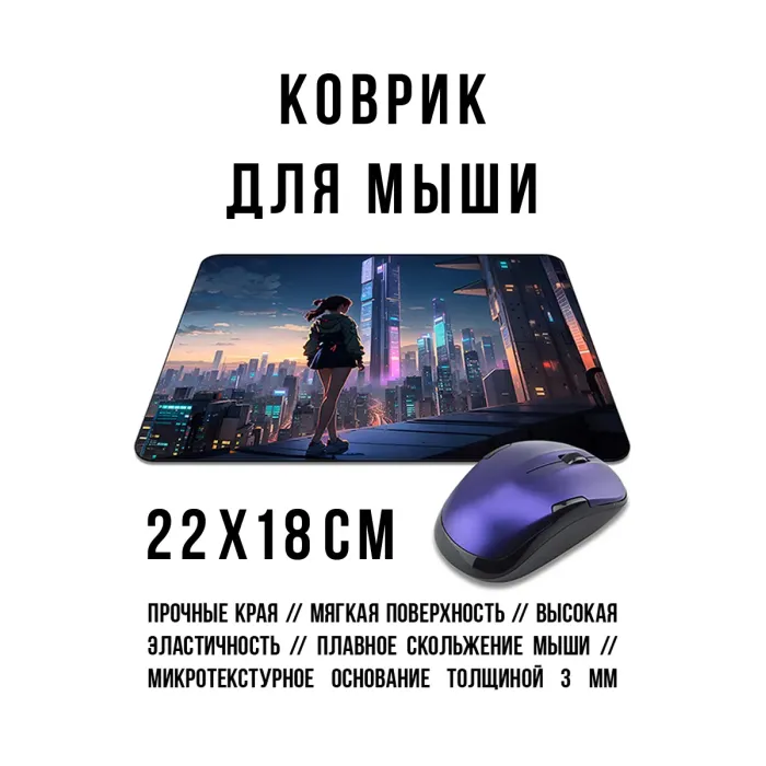 Коврик для мыши с изображением аниме-девушки, выполненный из прорезиненного материала.