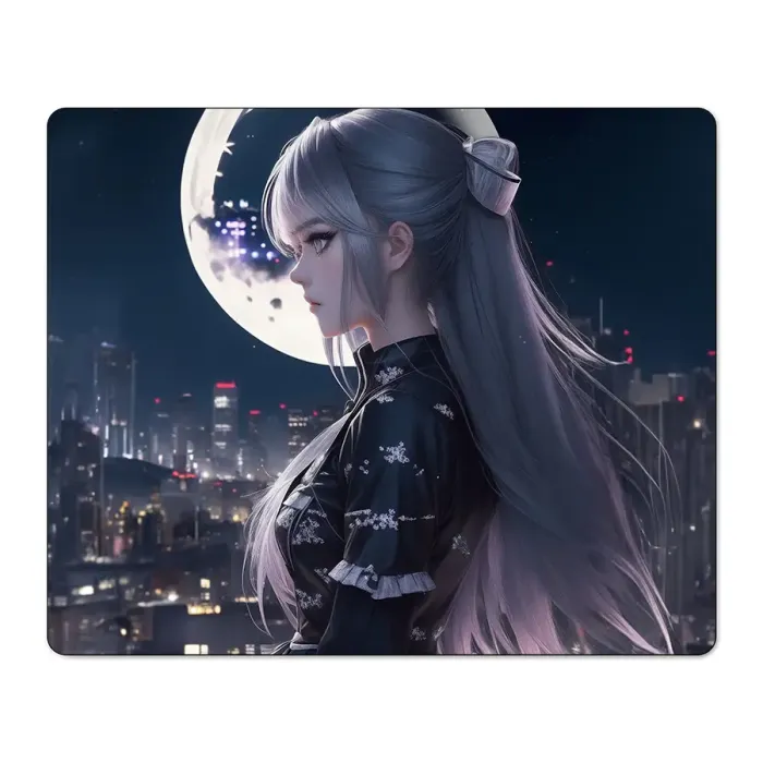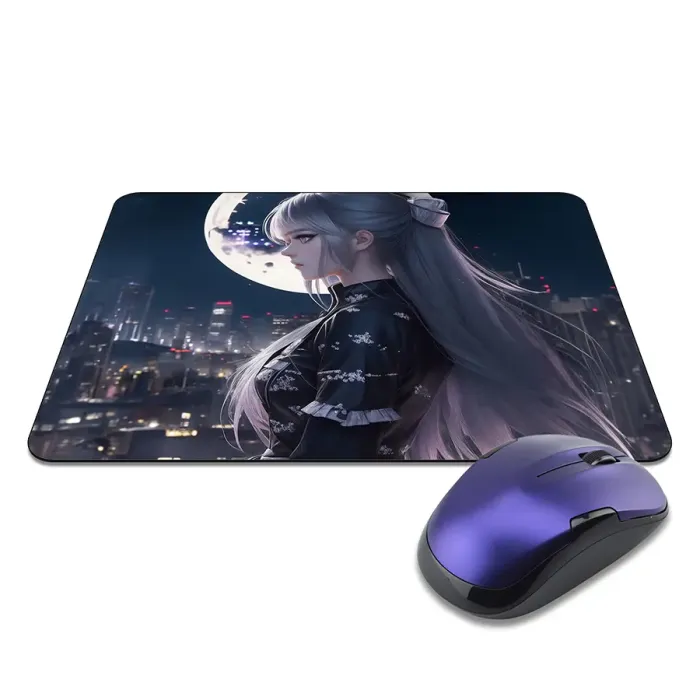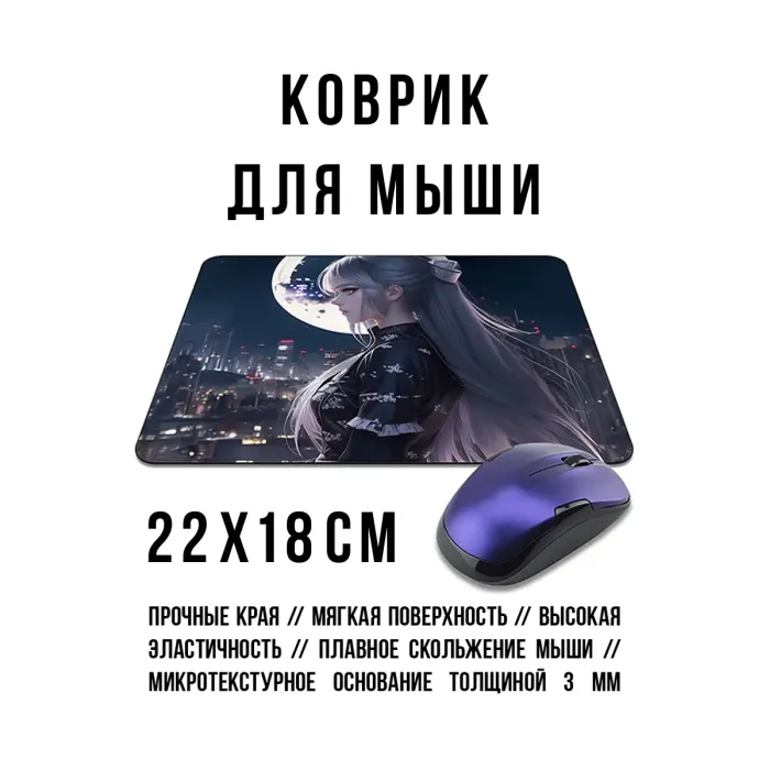 Коврик для мыши с изображением аниме-девушки в профиль. Имеет прорезиненную основу.