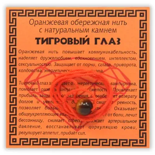 Оранжевая обережная нить с тигровым глазом KN1-06