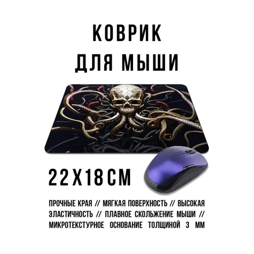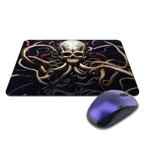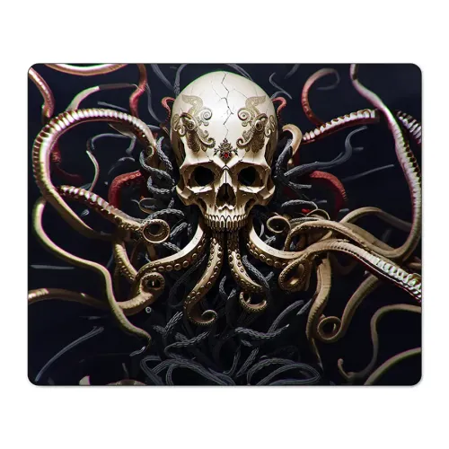 Коврик для мыши с изображением черепа с щупальцами. Прорезиненная основа.
