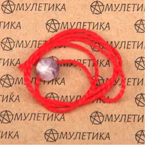 Красная обережная нить с аметистом KN1-09