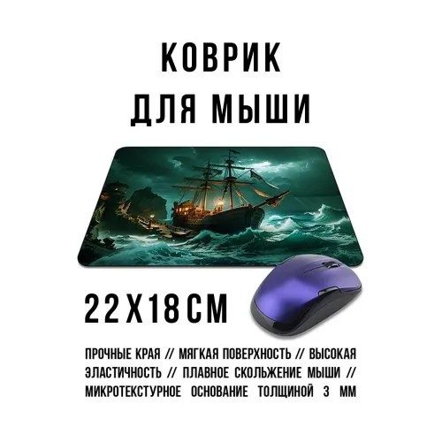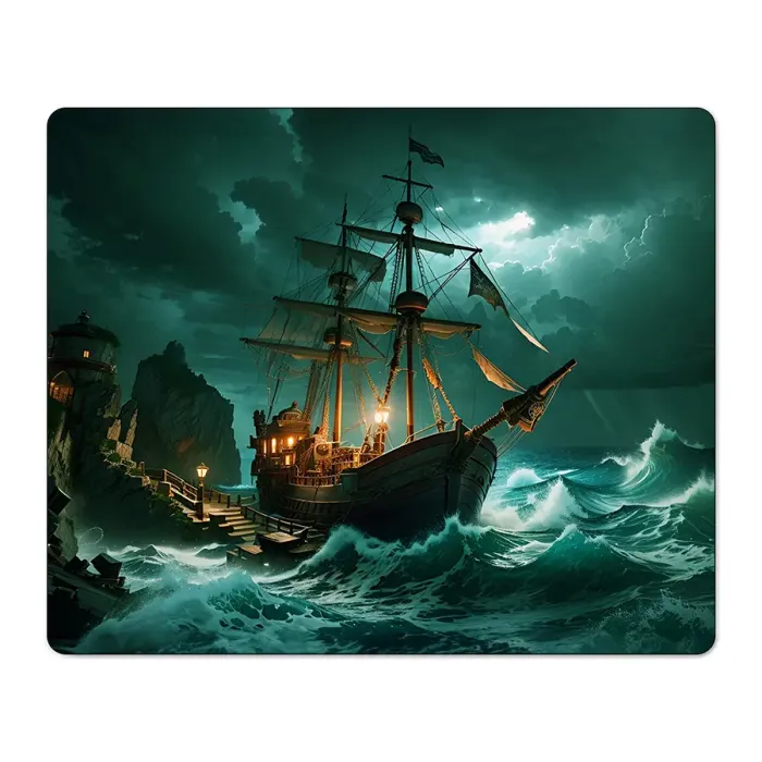 Коврик для мыши с изображением парусника в шторм. Материал — прорезиненная основа.