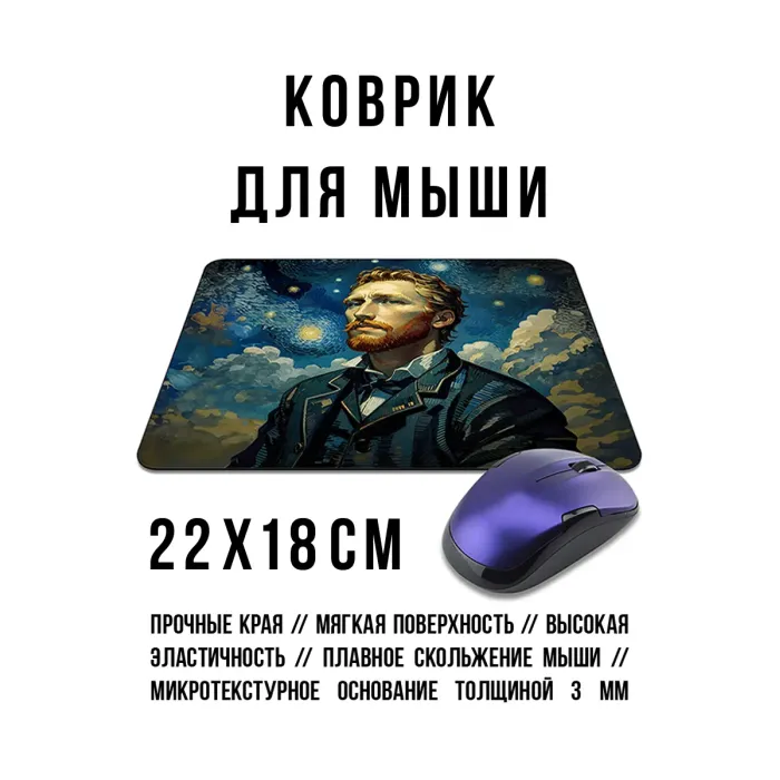 Коврик для мыши с изображением картин Ван Гога. Материал — прорезиненный.