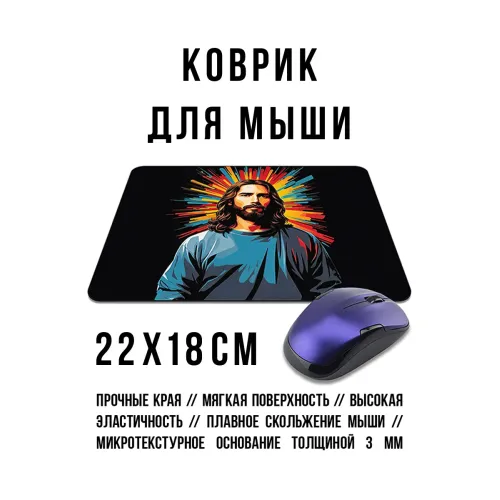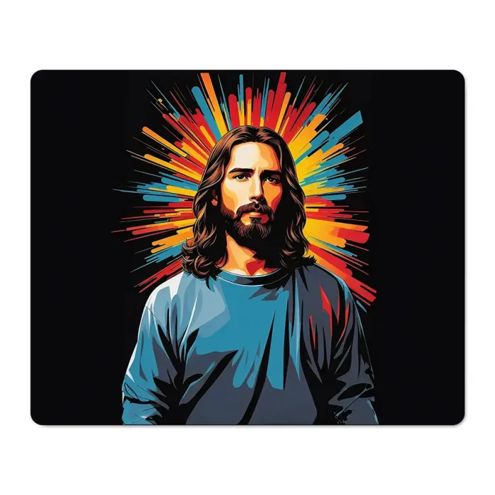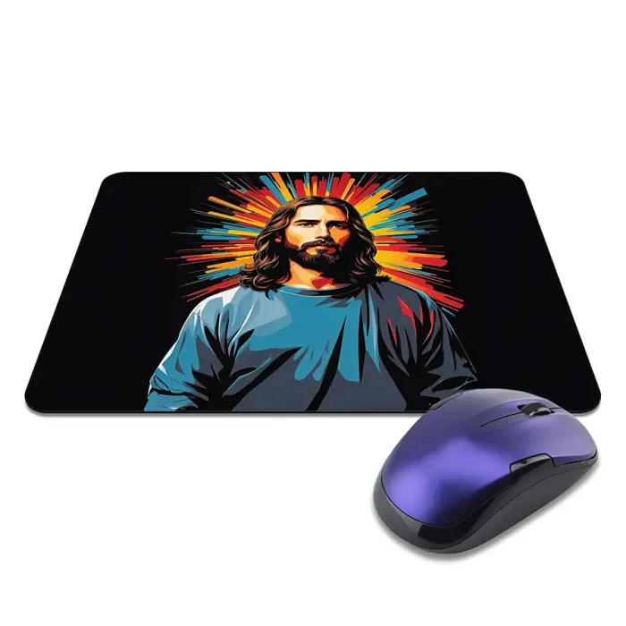 Коврик для мыши с изображением Иисуса в лонгсливе. Материал — прорезиненная основа.