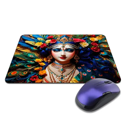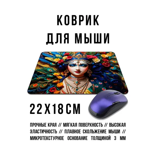 Коврик для мыши с изображением девушки с перьями. Прорезиненная основа, размер 22х18 см, толщина 3 мм.