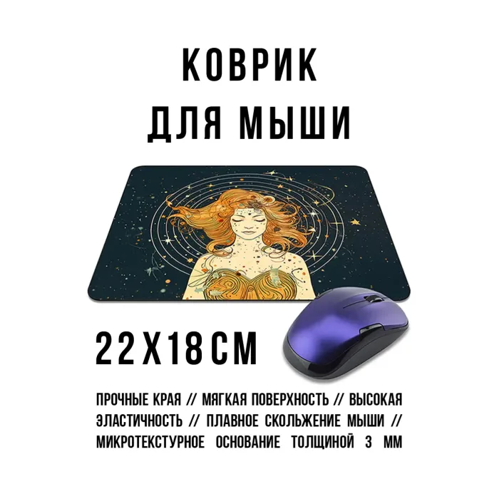 Коврик для мыши с изображением девушки в космосе — это стильный аксессуар, который не только украсит рабочее место, но и обеспечит комфорт при использовании. Прорезиненная основа гарантирует надежное сцепление с поверхностью стола, а толщина в 3 мм создает оптимальные условия для скольжения мышки.