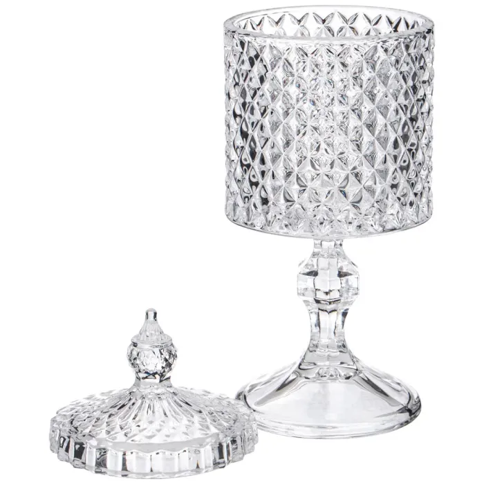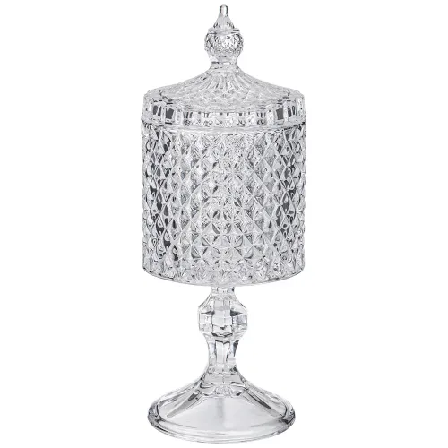 Емкость для хранения на ножке Diamant от Lefard — это стильный и функциональный аксессуар из высококачественного стекла. Подходит для хранения различных мелочей, а также для сервировки сладостей и закусок. Изделие отличается изящными линиями и блеском, что придаёт ему особый шарм.