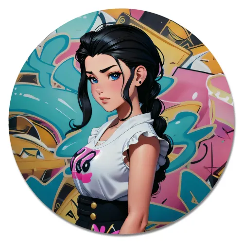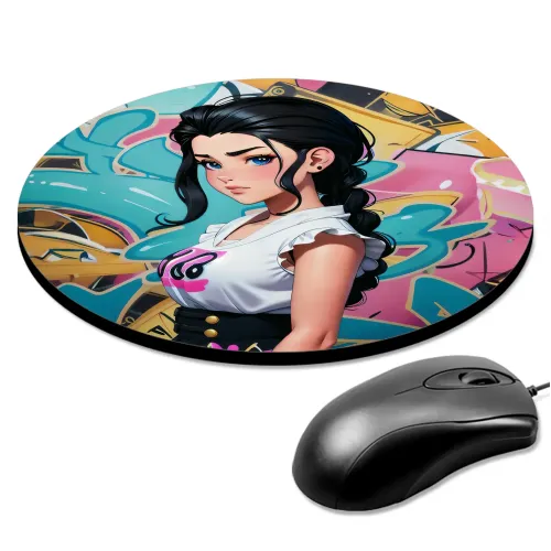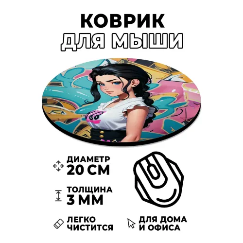 Коврик для мыши Девушка на фоне граффити, d.20см KM1161