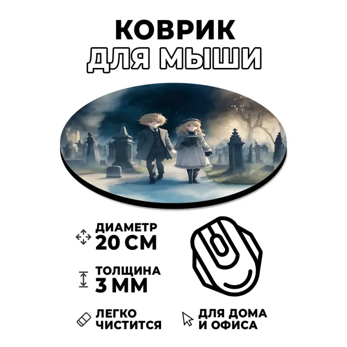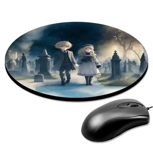 Коврик для мыши Пара на кладбище, d.20см KM1164