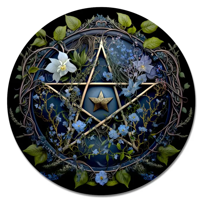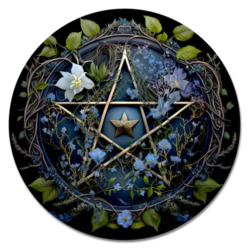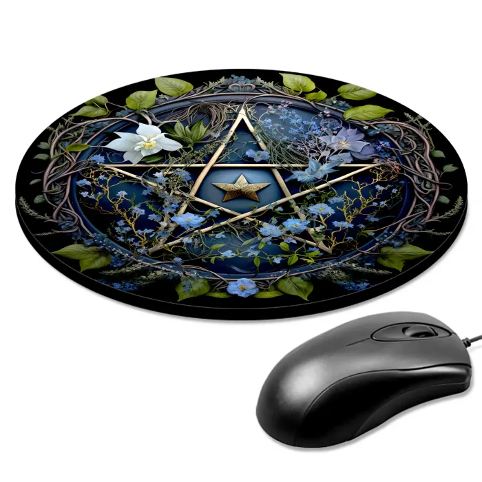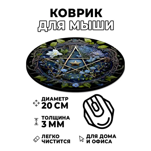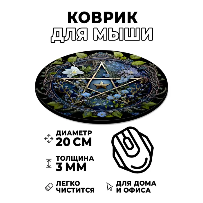 Коврик для компьютерной мыши круглой формы с изображением пентаграммы.
