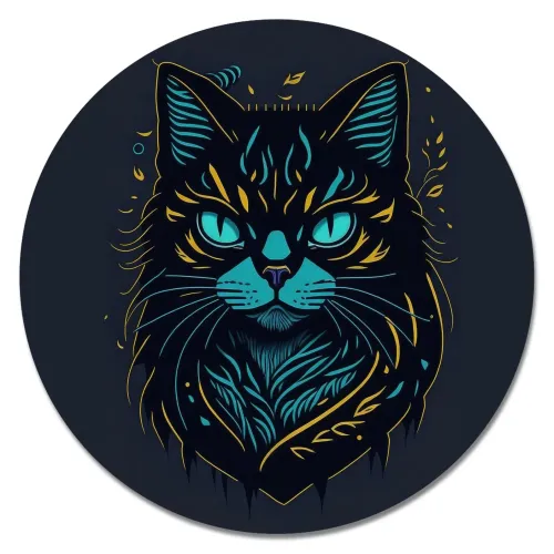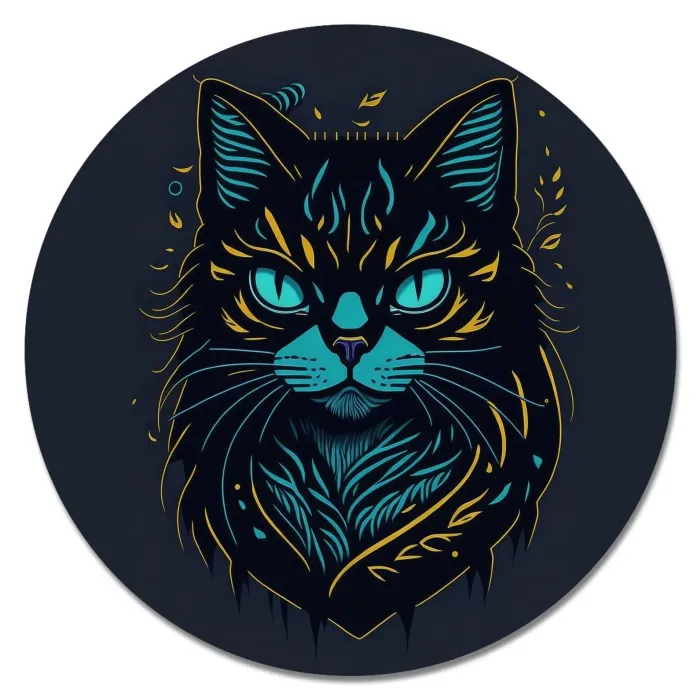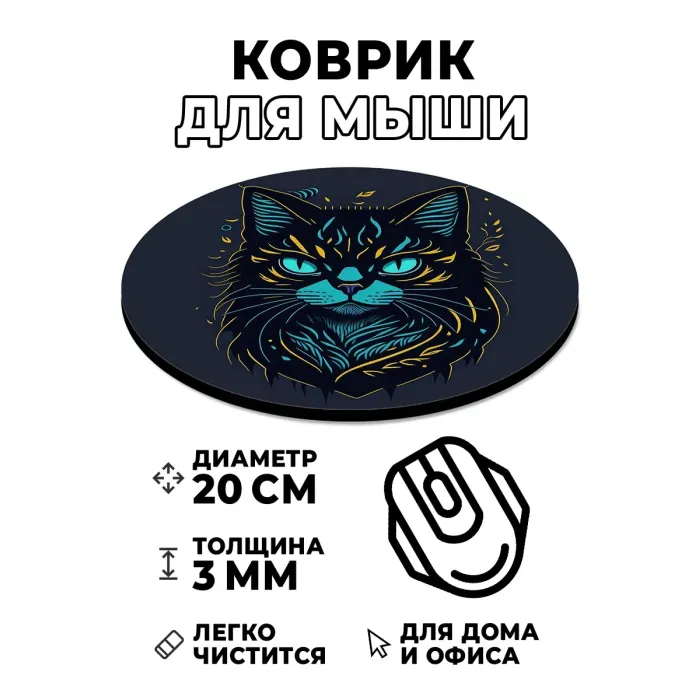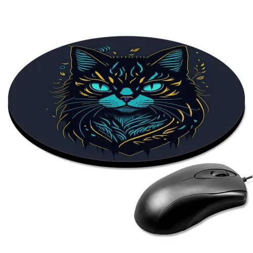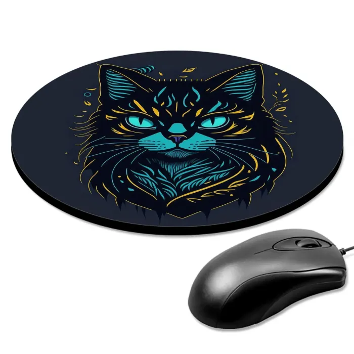 Коврик для компьютерной мыши круглой формы с изображением угрюмого кота.