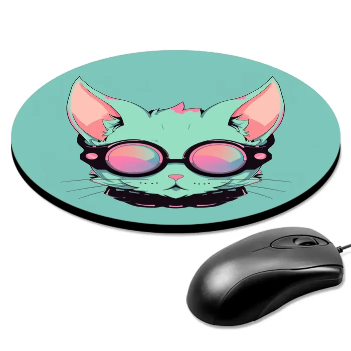 Коврик для компьютерной мыши с изображением кошки в очках.