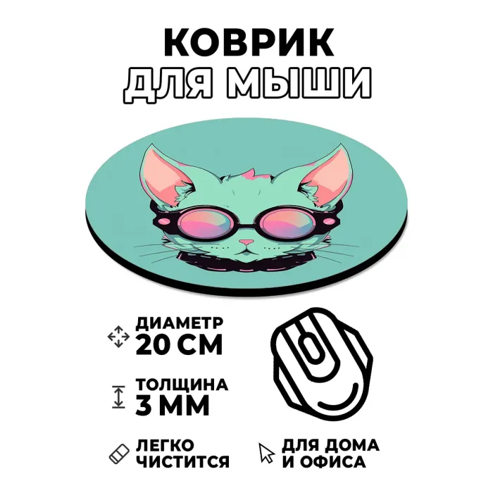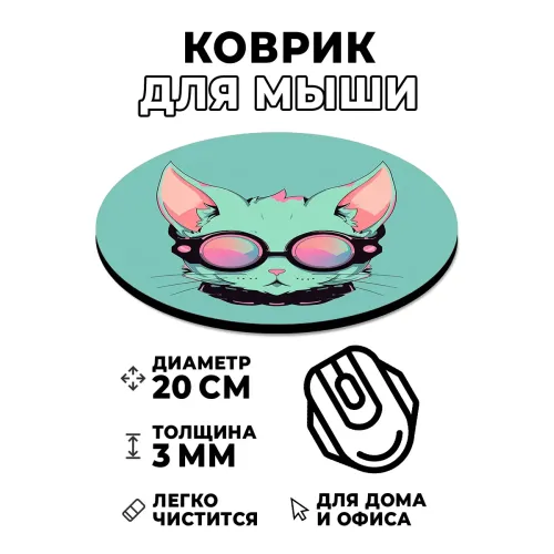 Коврик для мыши Кошка в очках, d.20см KM1175