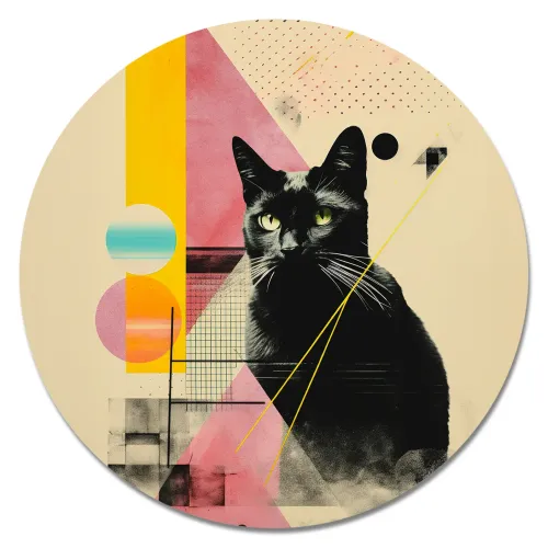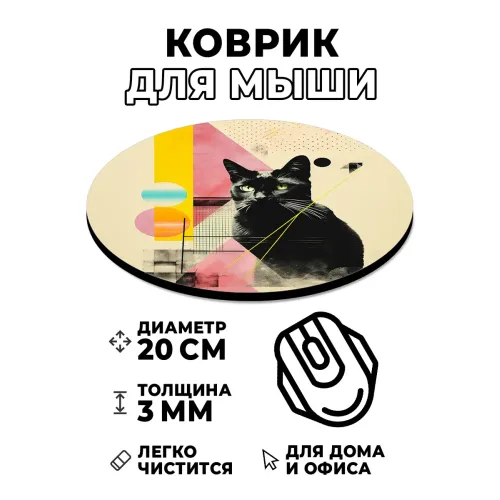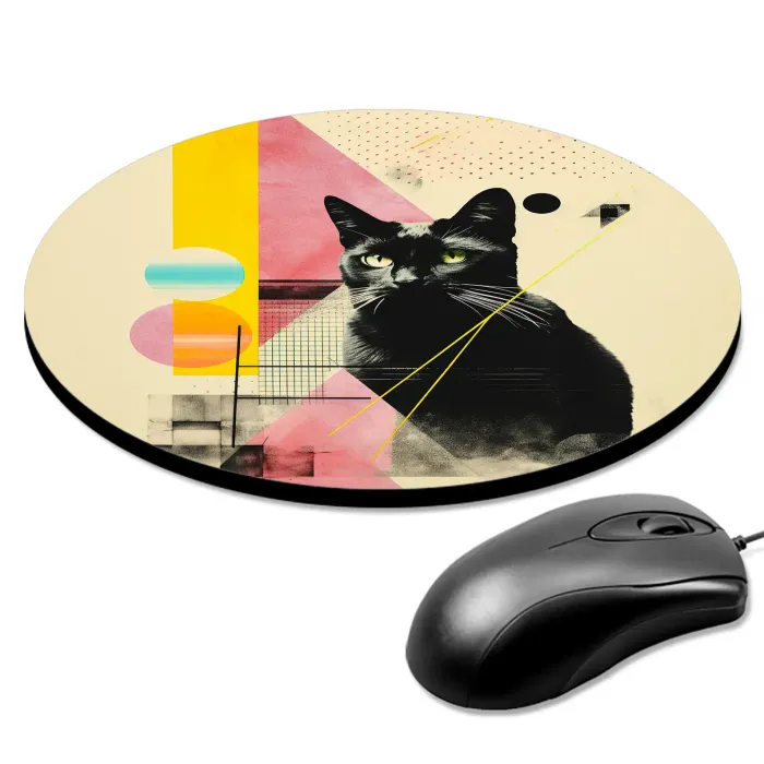 Коврик для компьютерной мыши круглой формы с изображением винтажного кота.