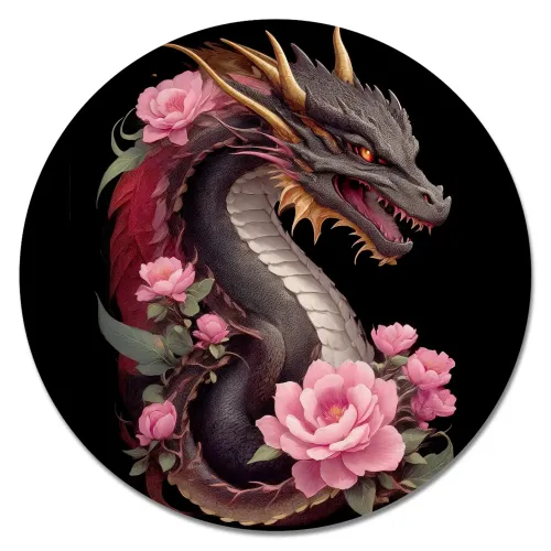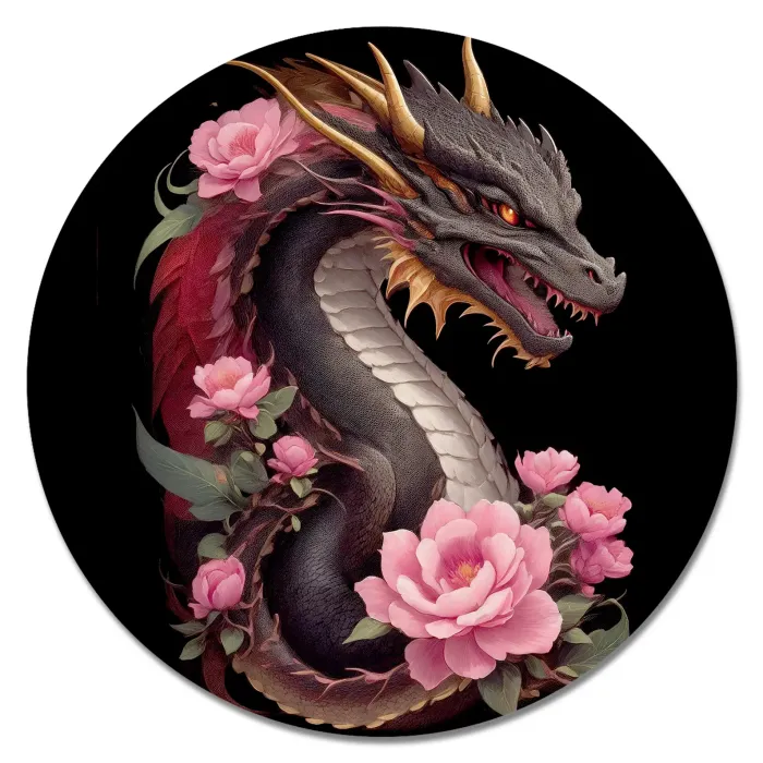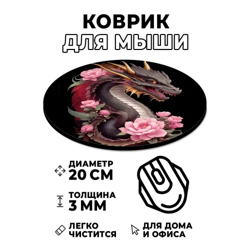 Коврик для мыши Дракон с розами, d.20см KM1184