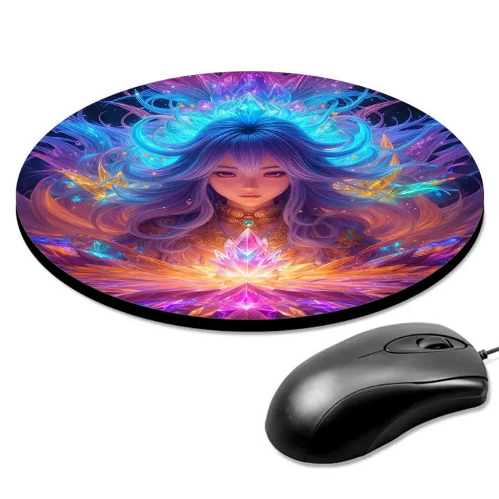 Коврик для компьютерной мыши с круглой формой и тематическим дизайном.