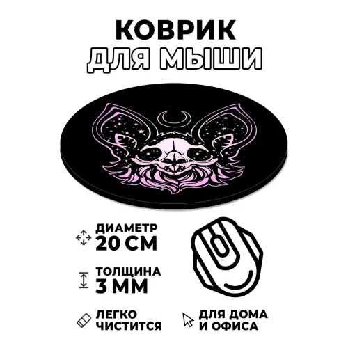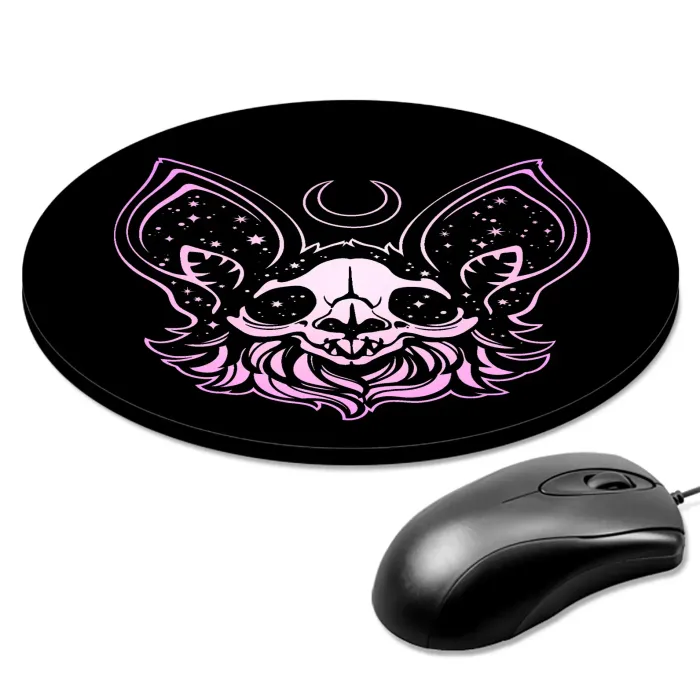 Коврик для компьютерной мыши круглой формы с изображением летучей мыши.