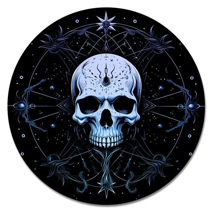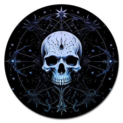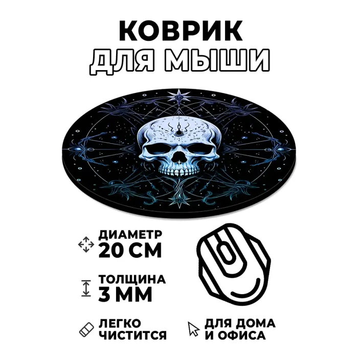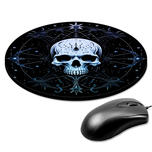 Коврик для компьютерной мыши круглой формы с изображением черепа в узоре.