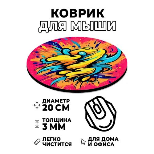 Коврик для компьютерной мыши с уникальным изображением, который станет стильным дополнением рабочего пространства. Благодаря диаметру 20 см и толщине 3 мм он обеспечивает комфортное использование и отличное скольжение мышки.