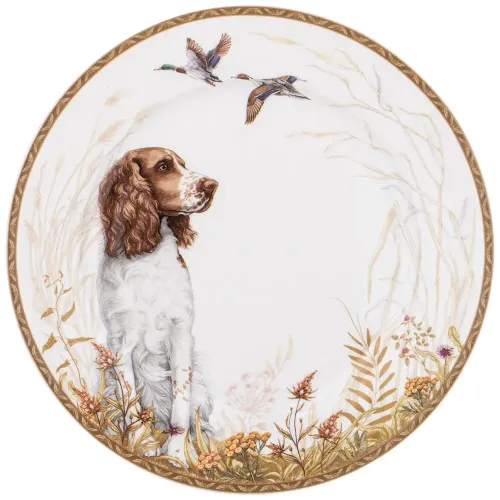 Тарелка закусочная из коллекции «Охота» от бренда Lefard предназначена для подачи закусок и холодных блюд. Изделие изготовлено из фарфора и украшено декором с изображениями животных.
