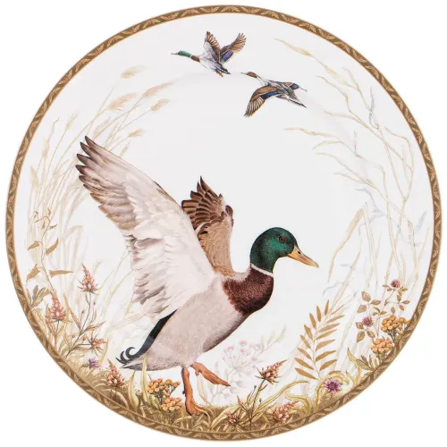Для сохранения декоративного покрытия используйте щадящие моющие средства. Тарелка может входить в состав сервизов или использоваться отдельно в рамках тематической сервировки. Дизайн коллекции «Охота» сочетается со стилями интерьера, использующими природные и классические мотивы.