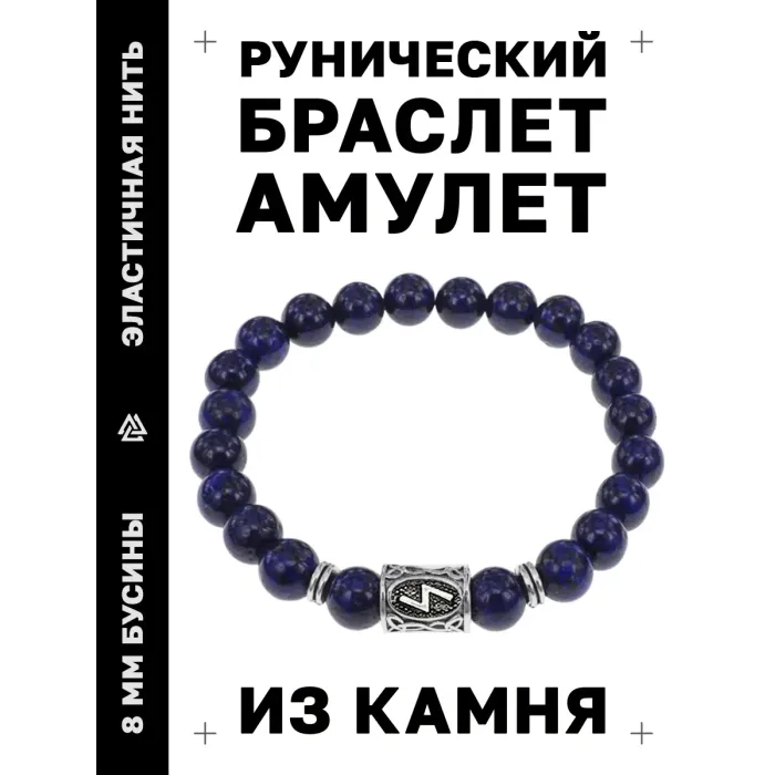 Браслет с руной Соулу и нат.камнем Лазурит BSRD-01-10
