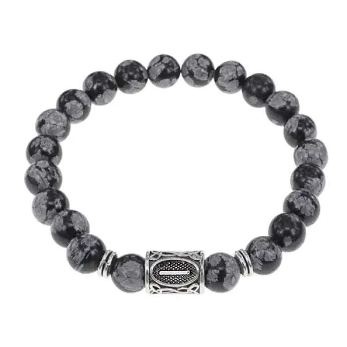 Браслет с руной Иса и натуральным камнем снежный обсидиан.
