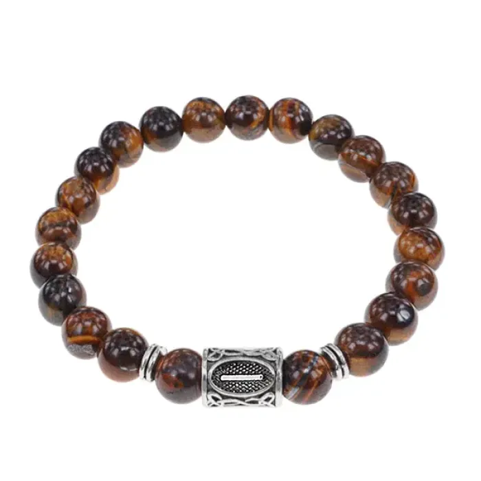 Браслет с руной Иса и бусинами из тигрового глаза.