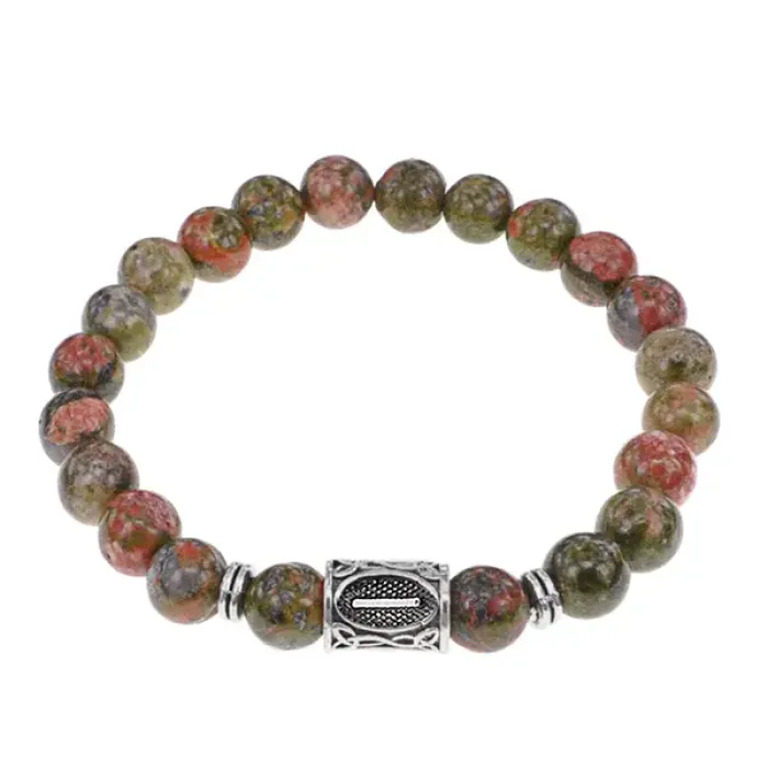 Браслет с руной Иса и нат.камнем Унакит BSRD-02-20