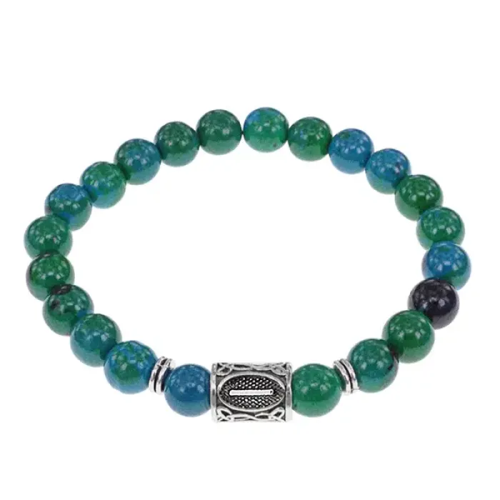 Браслет с руной Иса и синт.камнем Хризоколла BSRD-02-21