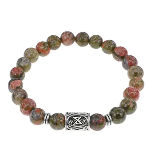 Браслет с руной Дагаз и нат.камнем Унакит BSRD-03-20