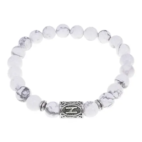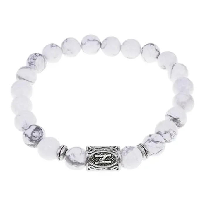 Стрейч-браслет с руной Хагалаз и бусинами из натурального камня кахолонг.