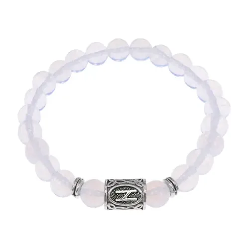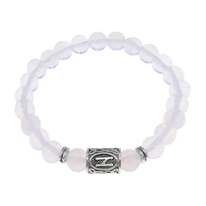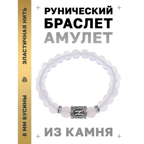 Стрейч-браслет с руной Хагалаз и синтетическим камнем Лунный камень.