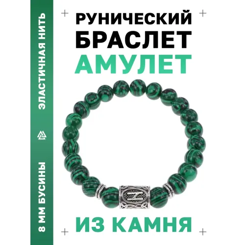 Браслет с руной Хагалаз и синтетическим камнем малахит для сувенирного или личного использования.