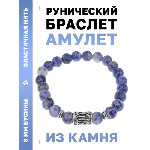 Стрейч-браслет с руной Хагалаз и бусинами из натурального камня содалит.