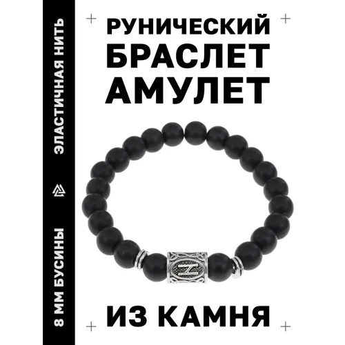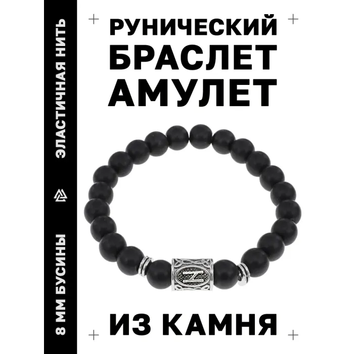 Стрейч-браслет с руной Хагалаз и бусинами из синтетического шунгита.