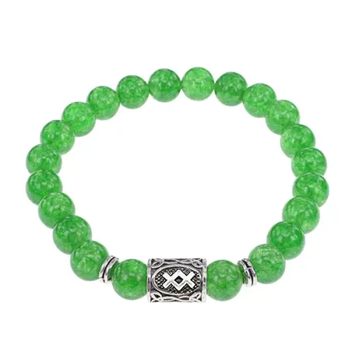 Стрейч-браслет с руной Ингуз и бусинами из натурального нефрита.