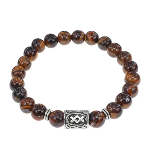Стрейч-браслет с символом руны Ингуз и бусинами из натурального камня тигровый глаз.