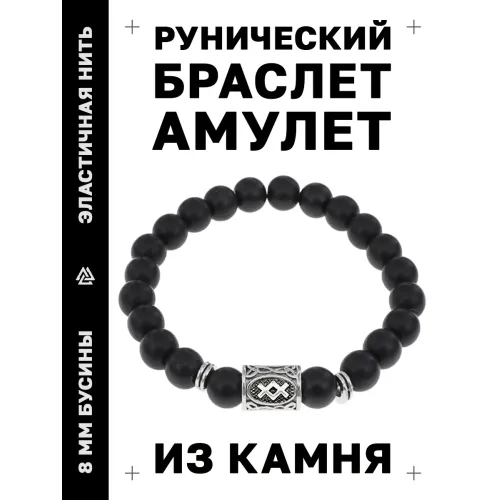 Стрейч-браслет с руной Ингуз и синтетическим камнем шунгит.