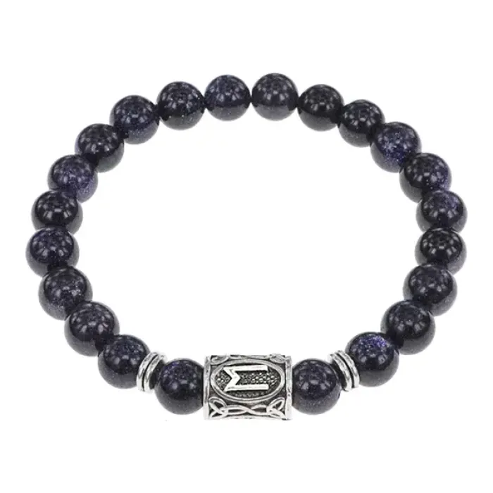 Браслет с руной Эваз и синт. камнем Синий авантюрин BSRD-06-02