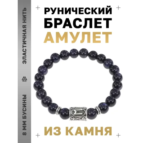Стрейч-браслет с руной Эваз и бусинами из синтетического камня синий авантюрин.