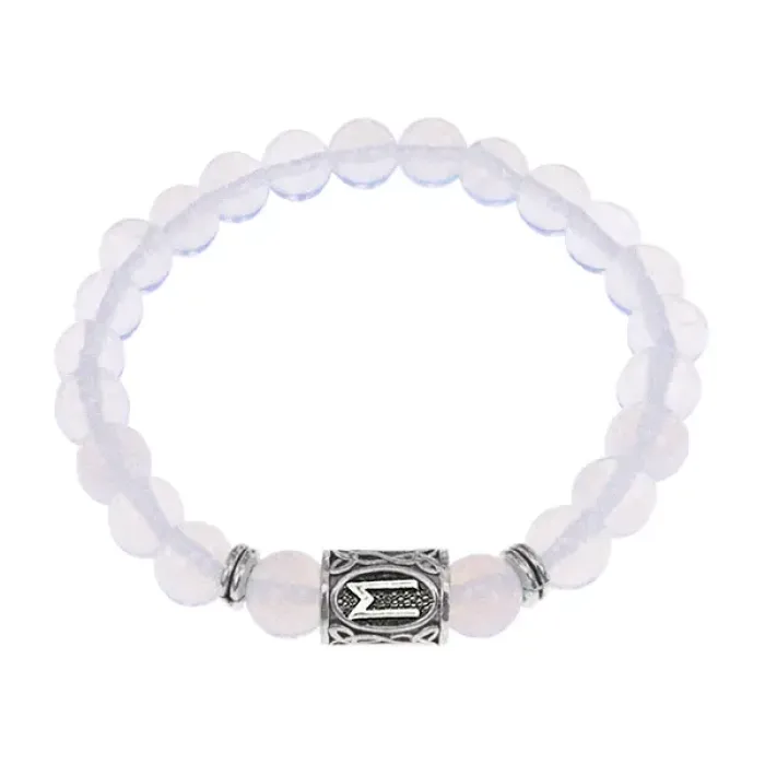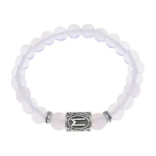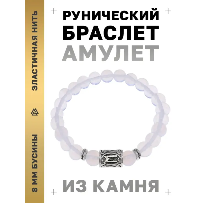 Стрейч-браслет с символом руны Эваз и бусинами из синтетического лунного камня.