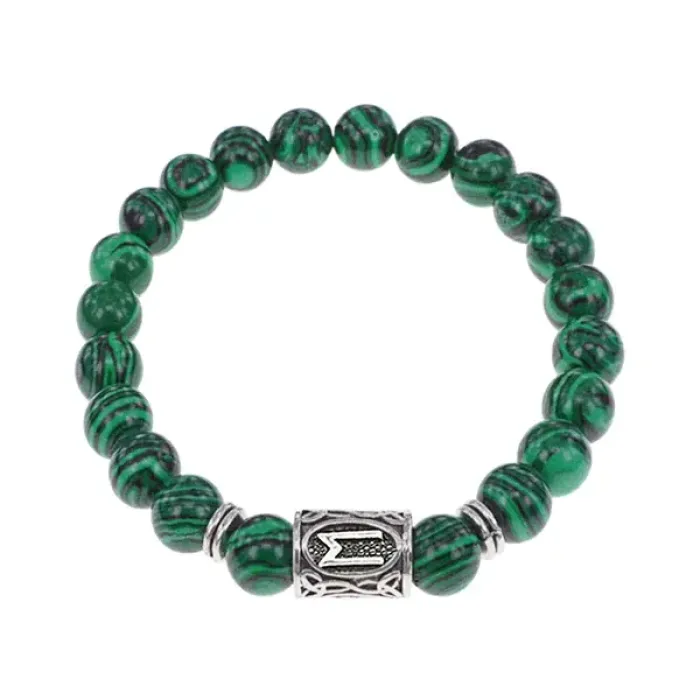 Браслет с руной Эваз и синт.камнем Малахит BSRD-06-12