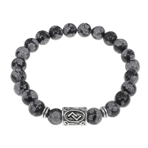 Браслет с руной Йера и нат.камнем Снежный обсидиан BSRD-07-14